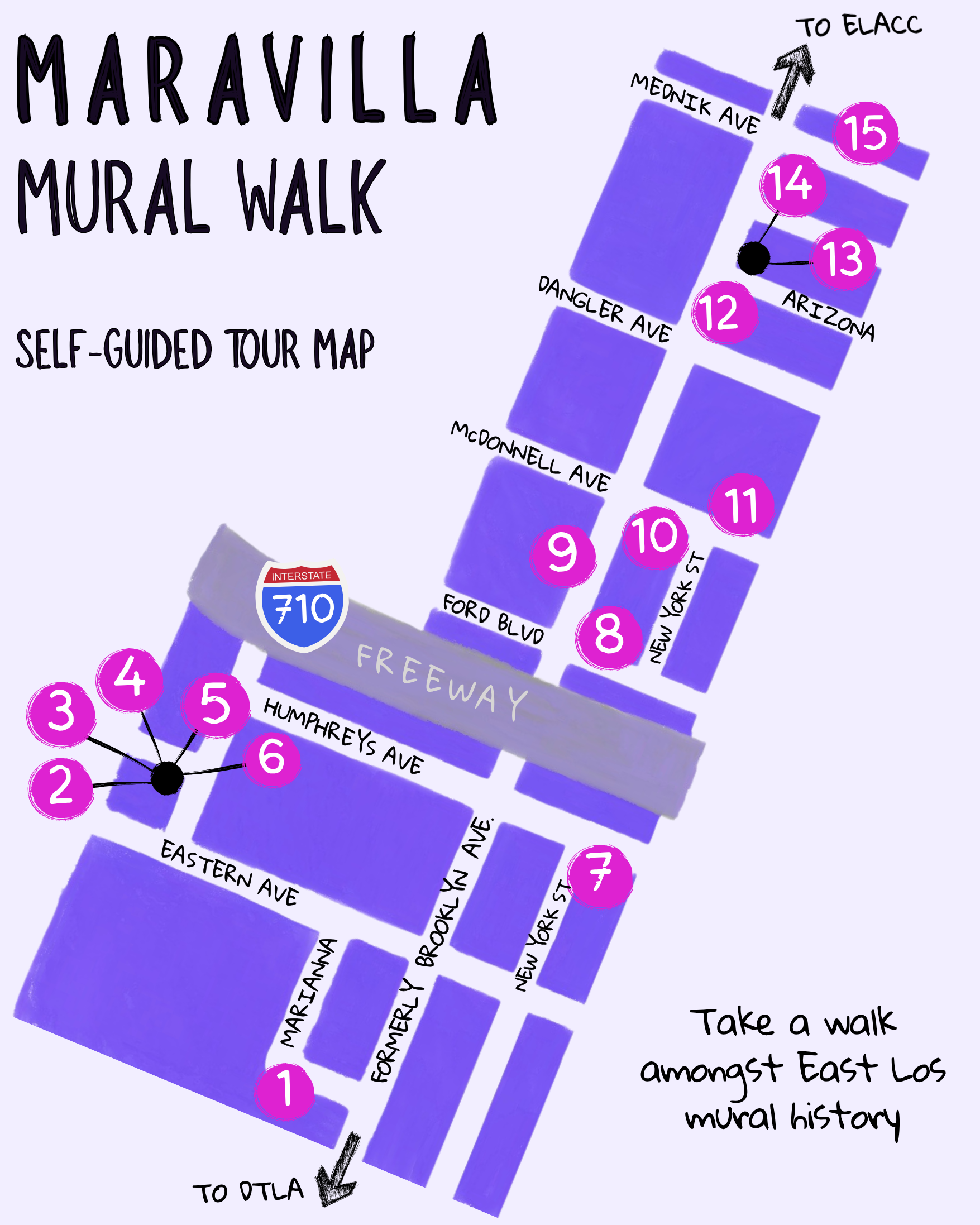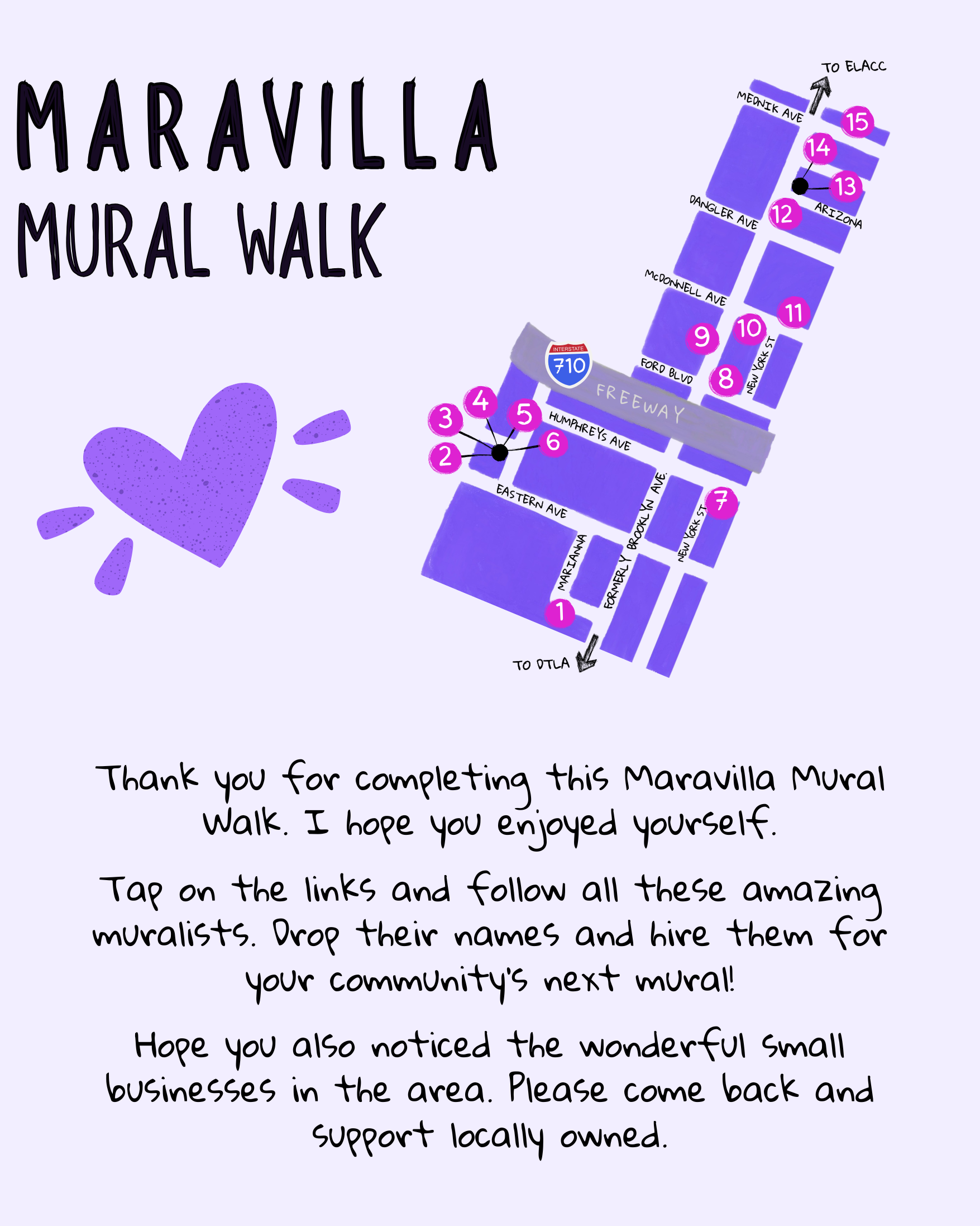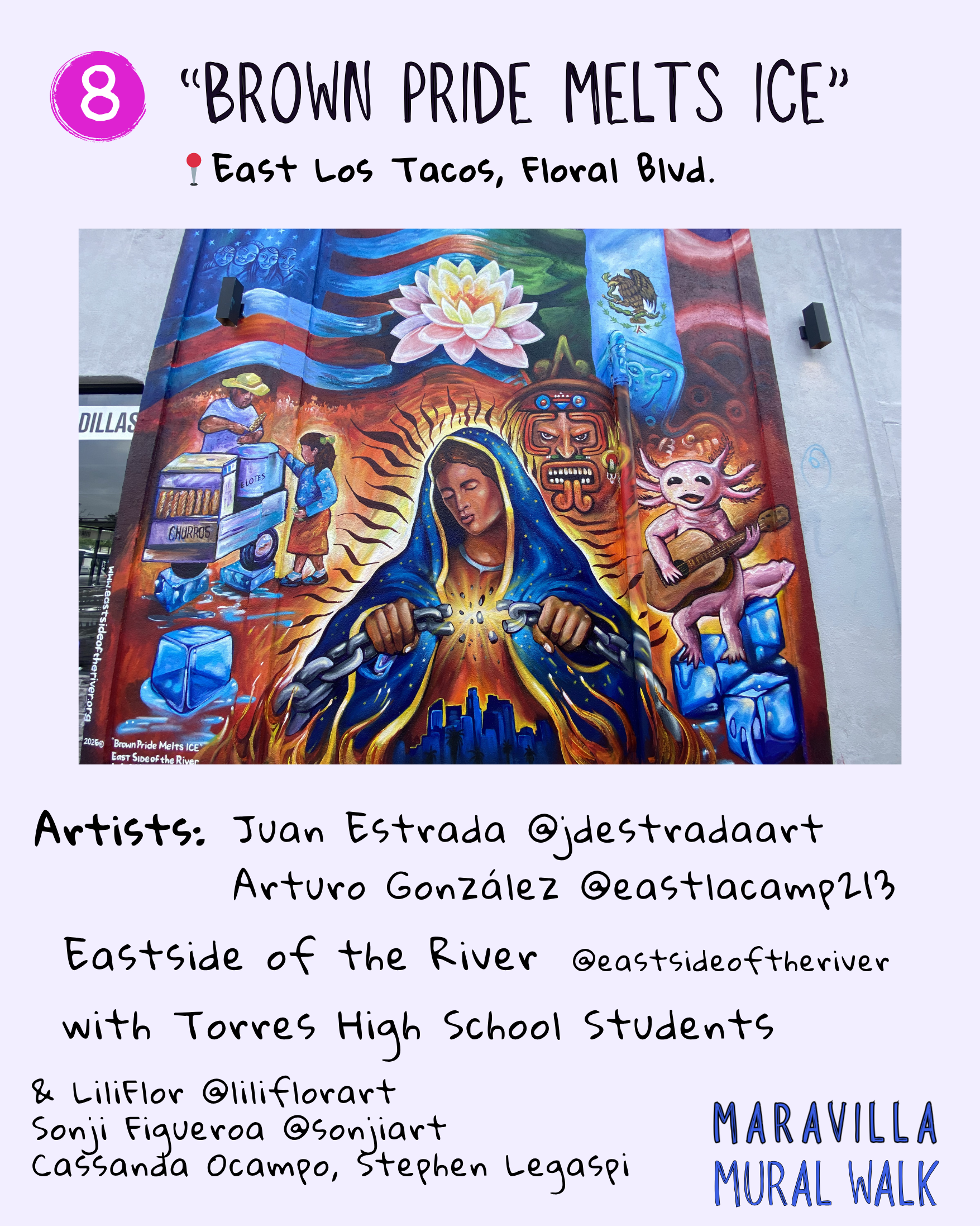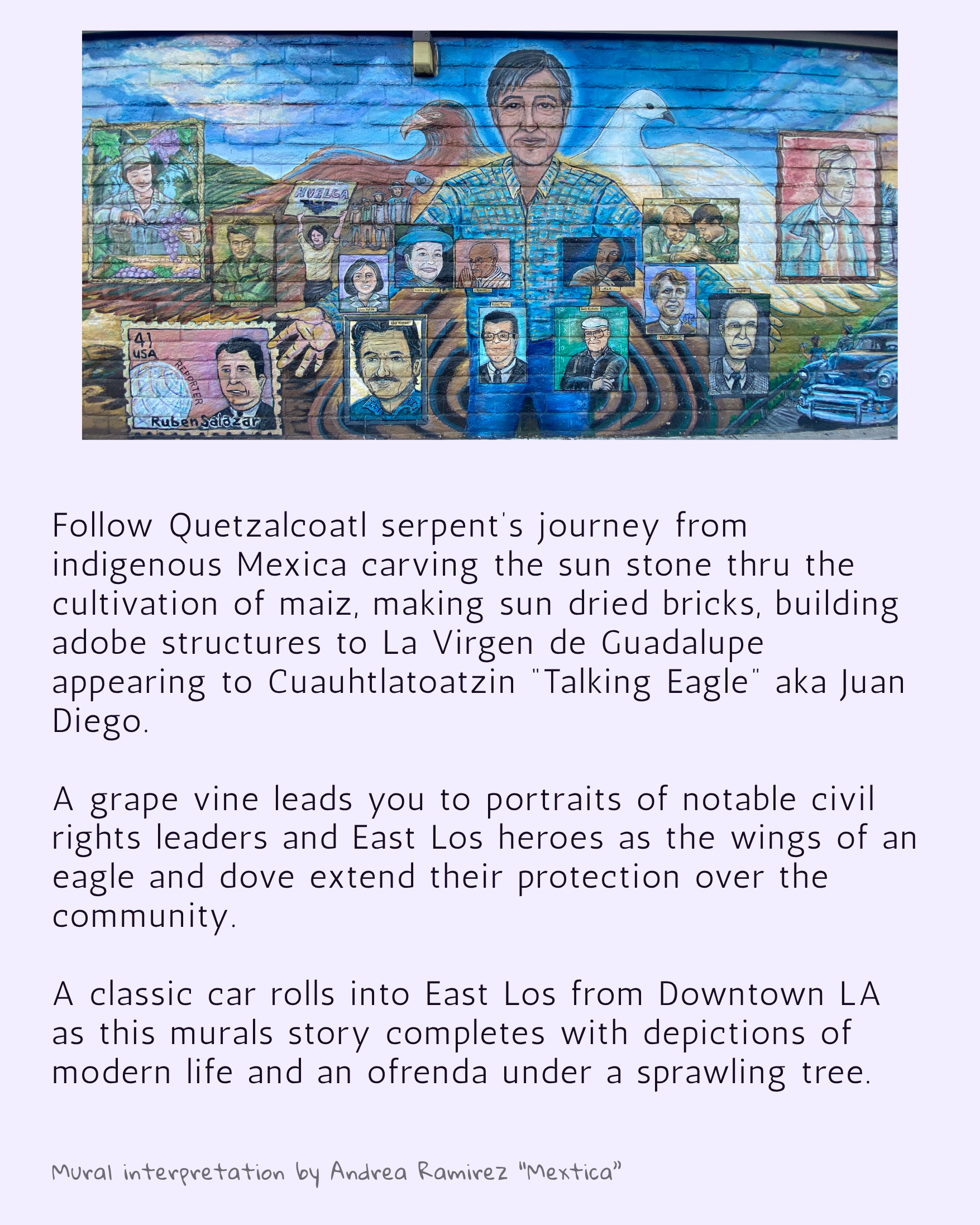 This mural project is an ongoing labor of love to bring community together through the historic and living legacy of muralism in the eastside. All across the eastside, we are surrounded by magnificent murals telling stories about our community and culture. through these self-guided mural walks, folks can get their steps in, learn about the murals and muralists, and further connect with the neighborhood, its culture, and its locally owned businesses.